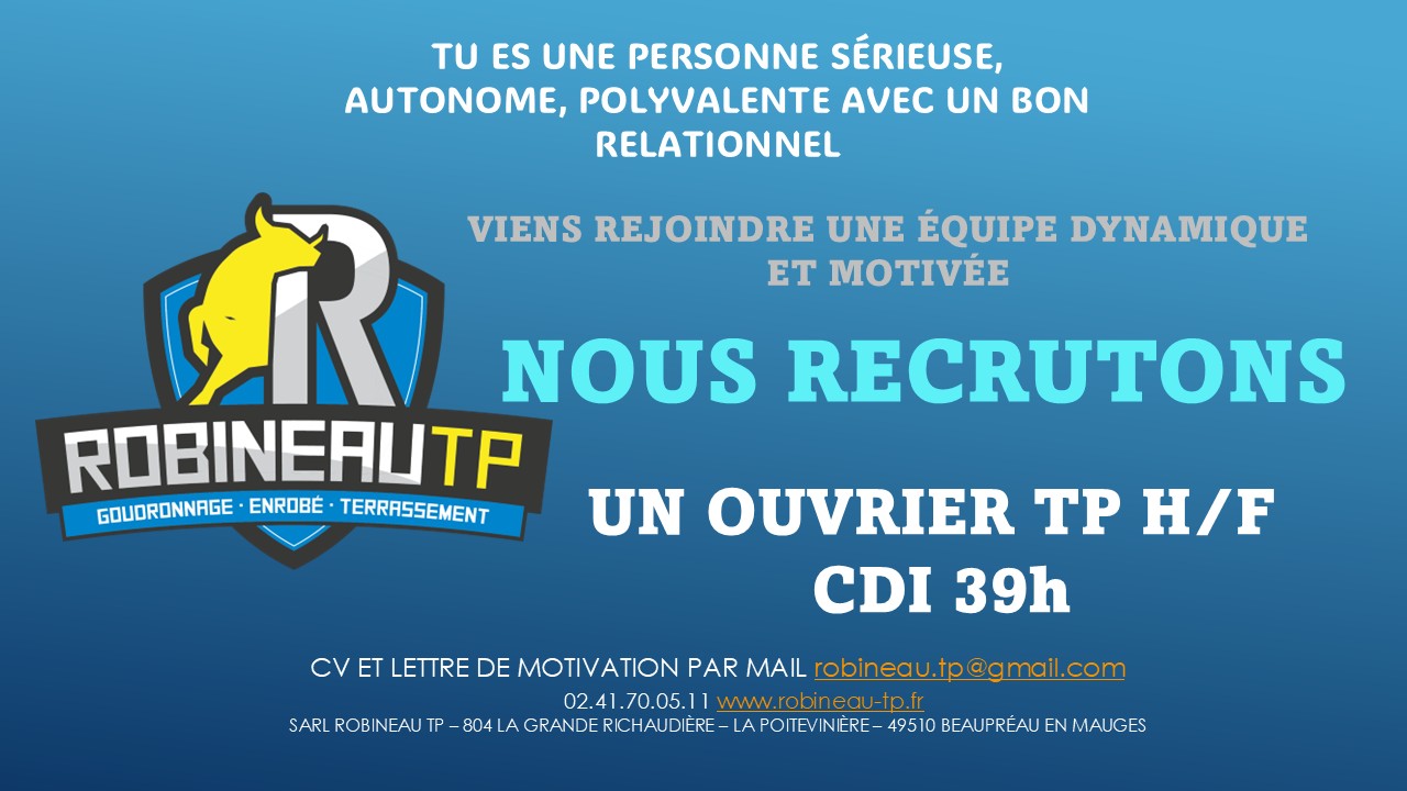 Entreprise de travaux publics située à Poitevinière, à Beaupréau-en-Mauges, ROBINEAU T.P. travaille aussi bien pour les particuliers que pour les professionnels.